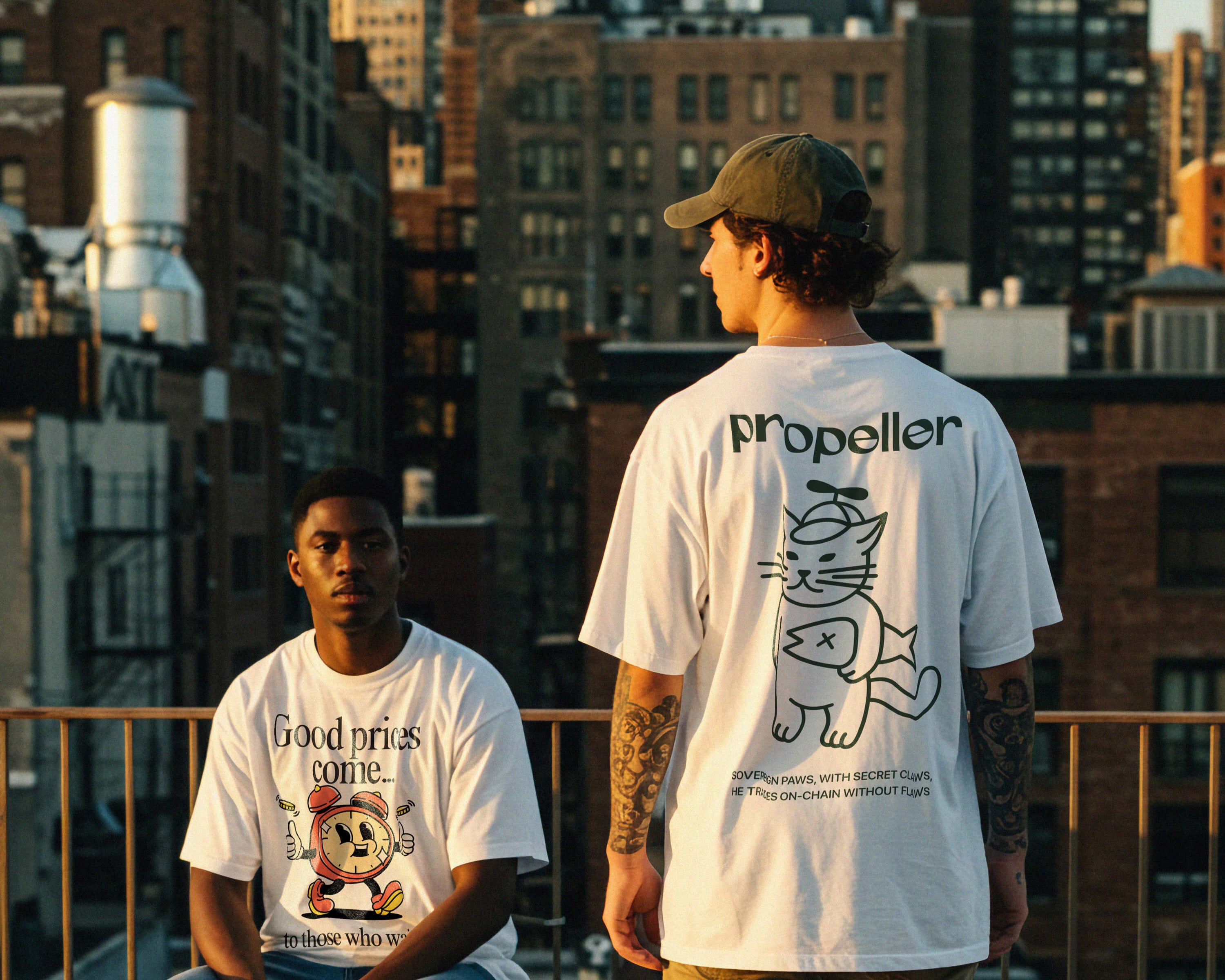Our first drops weren’t clothes, they were ideas — shapes born from code, sketches that carried the rhythm of trading screens and late-night builds. We turned those ideas into garments, so the energy of our community could live beyond the terminal.